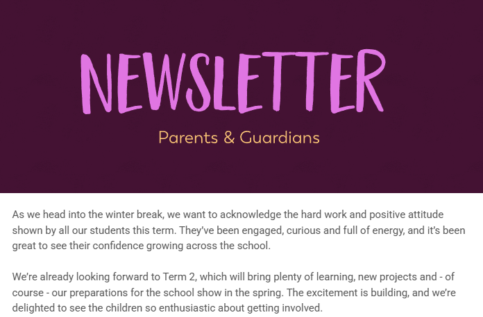 Newsletter – Parents & Guardians