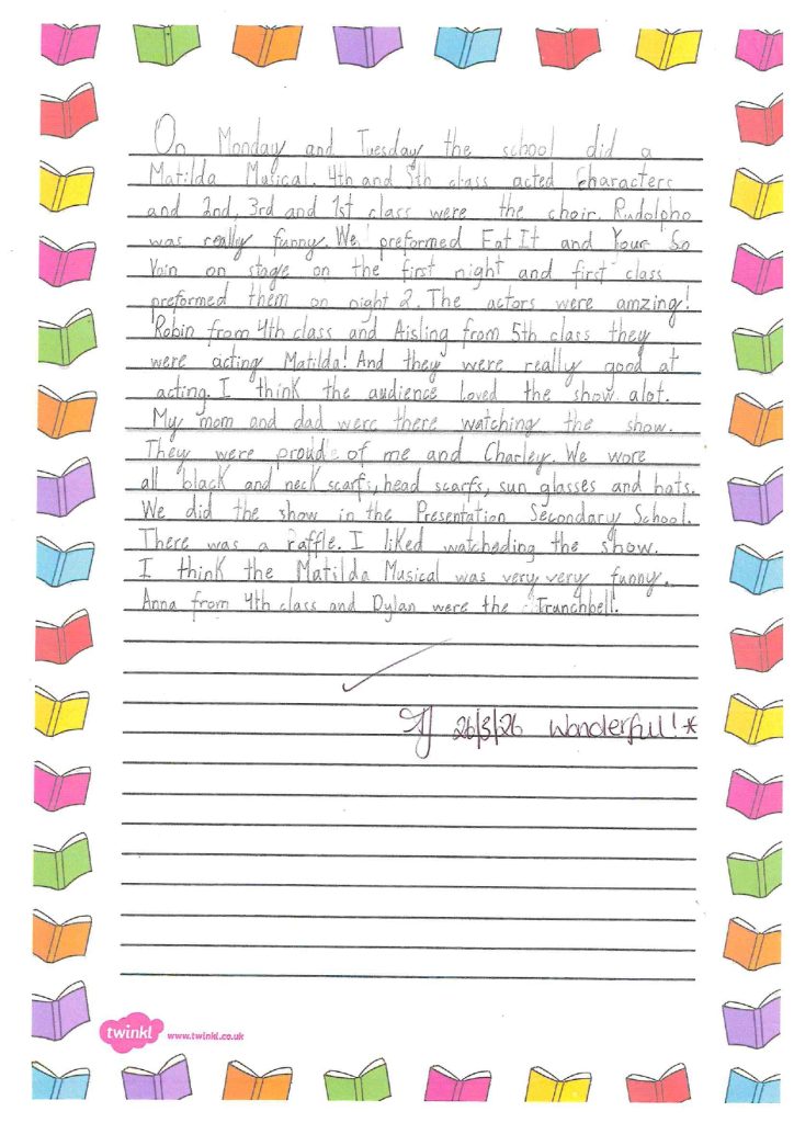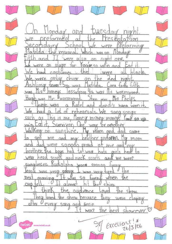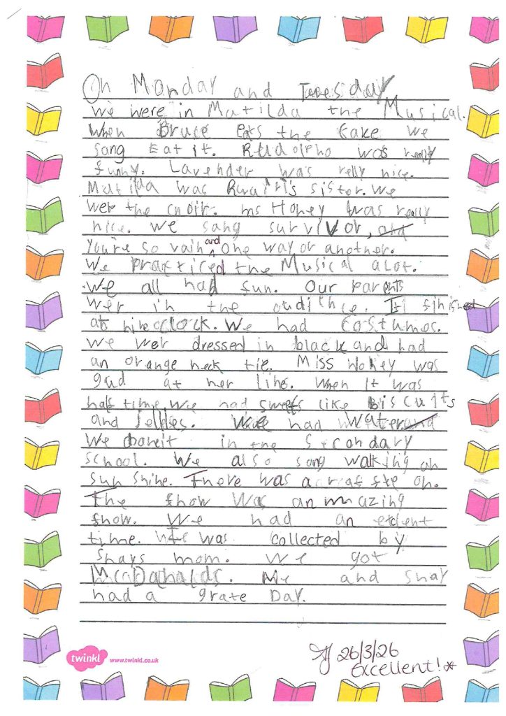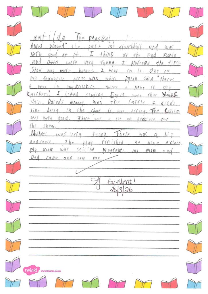 Check out some of the children’s recount writing where they shared their experiences of the show.